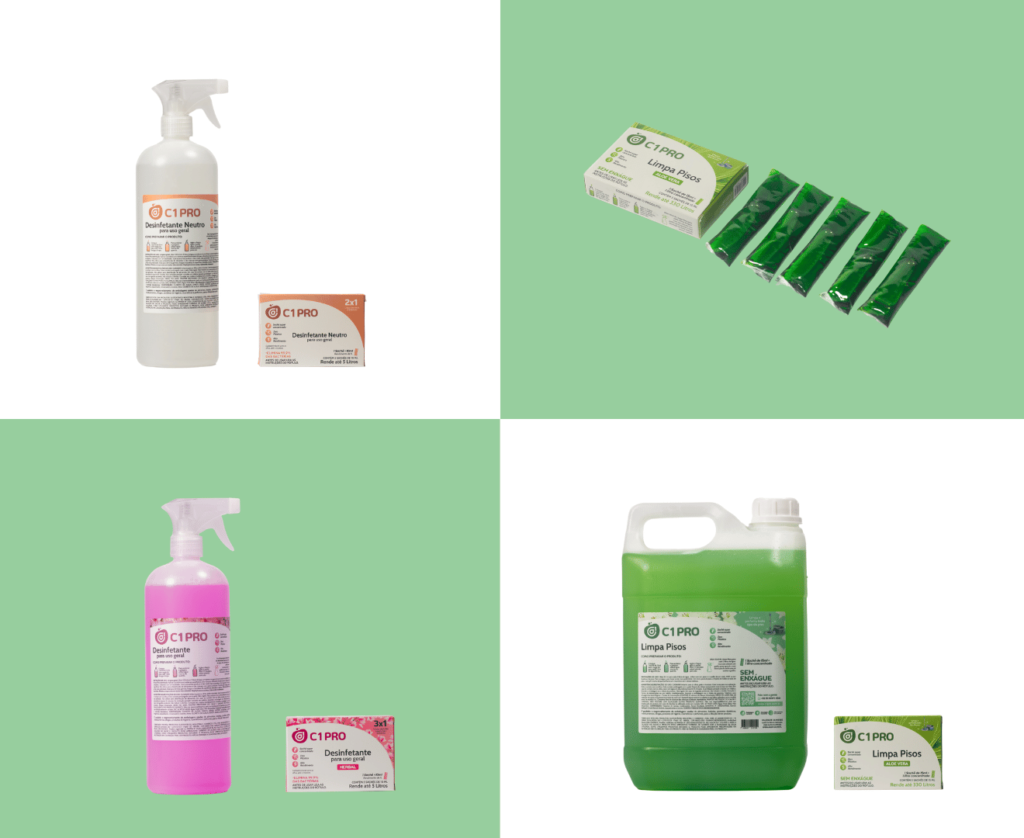 Além de eficiência e economia, a sustentabilidade também deve ser levada em conta na escolha dos produtos de limpeza. A Linha C1 PRO se destaca nesse aspecto, com seus sachês ultra concentrados e embalagens reduzidas, contribuindo para a diminuição do uso de plástico e do desperdício. Com a C1 PRO, você compra as embalagens apenas uma vez e consegue preparar seus produtos com facilidade, apenas preenchendo com água da torneira e adicionando um refil de produto em sachês ultra concentrados. Os sachês são hidrossolúveis e derretem por inteiro na água, evitando assim, o descarte de plástico desnecessário.