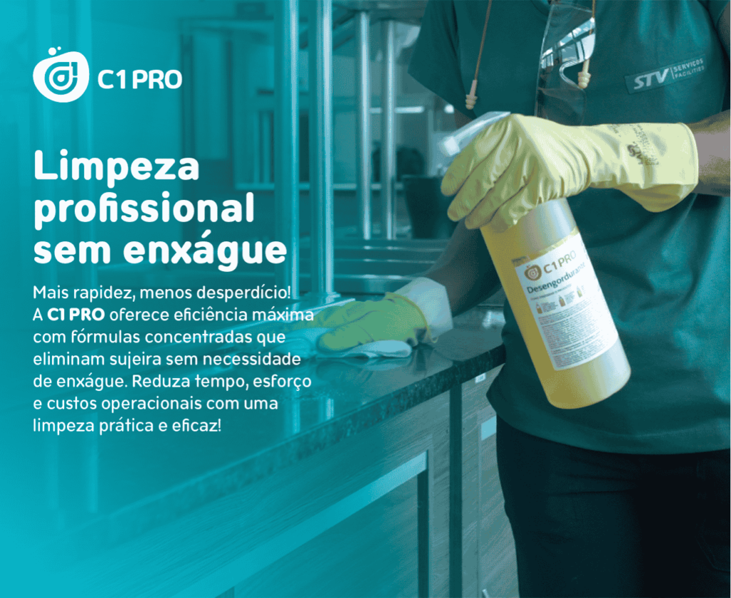A limpeza profissional nestes contextos exige soluções inovadoras, práticas e que ofereçam resultados eficazes sem adicionar complexidade ao processo. É aqui que a C1 PRO se destaca. Seus produtos de limpeza ultra concentrados, leves e compactos são a solução ideal para empresas com dificuldades logísticas, garantindo que a limpeza seja feita de maneira eficiente, rápida e econômica, sem sobrecarregar a logística.